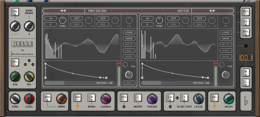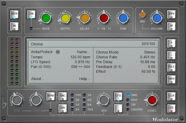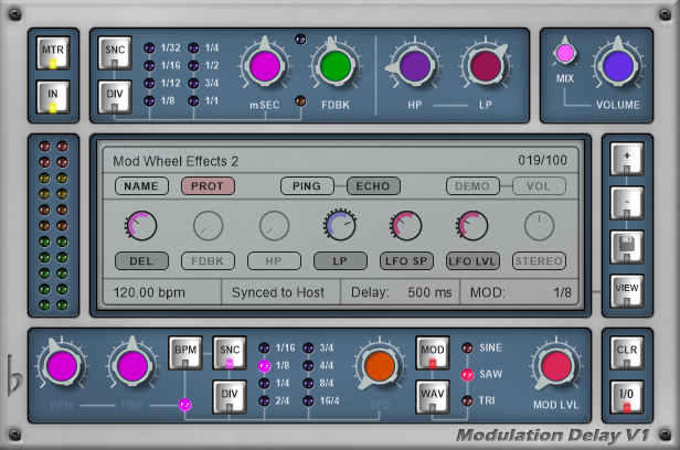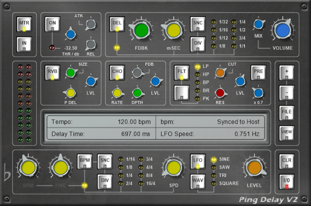 Ping Pong Delay mit Gate, LFO modulierbarem Filter, Chorus und Reverb.