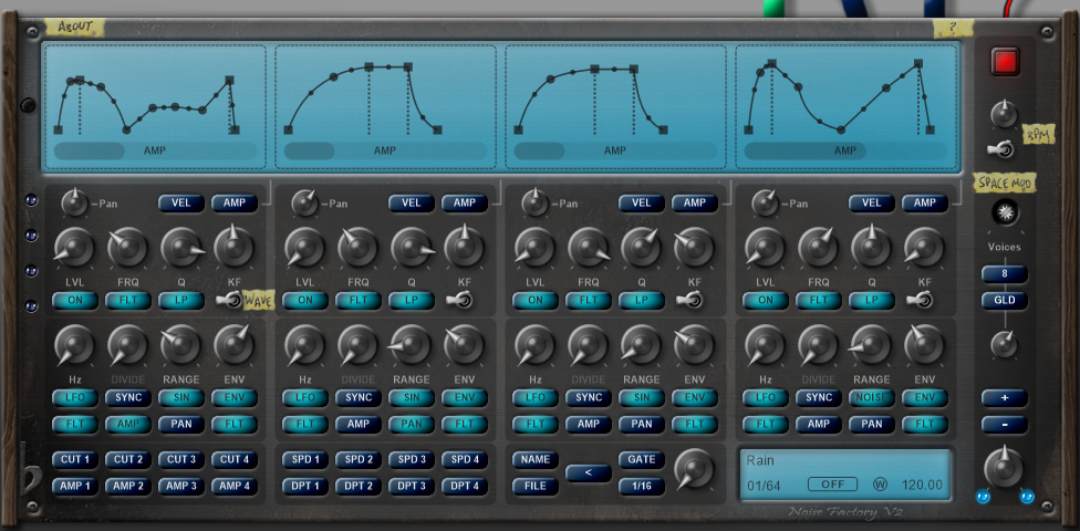 Filter mit editierbarer LFO Wellenform und Selbstmodulation.